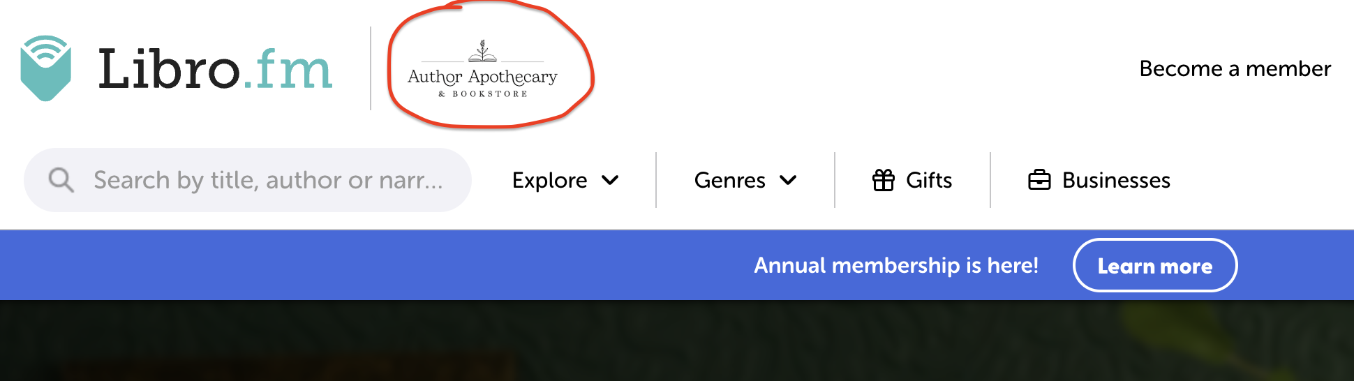 NOTE: If you do not see the name of our bookstore in the header next to the Libro.fm logo, then you are purchasing a book that is not linked to our bookstore, and we will not get the 10%-20% of sales from your order.