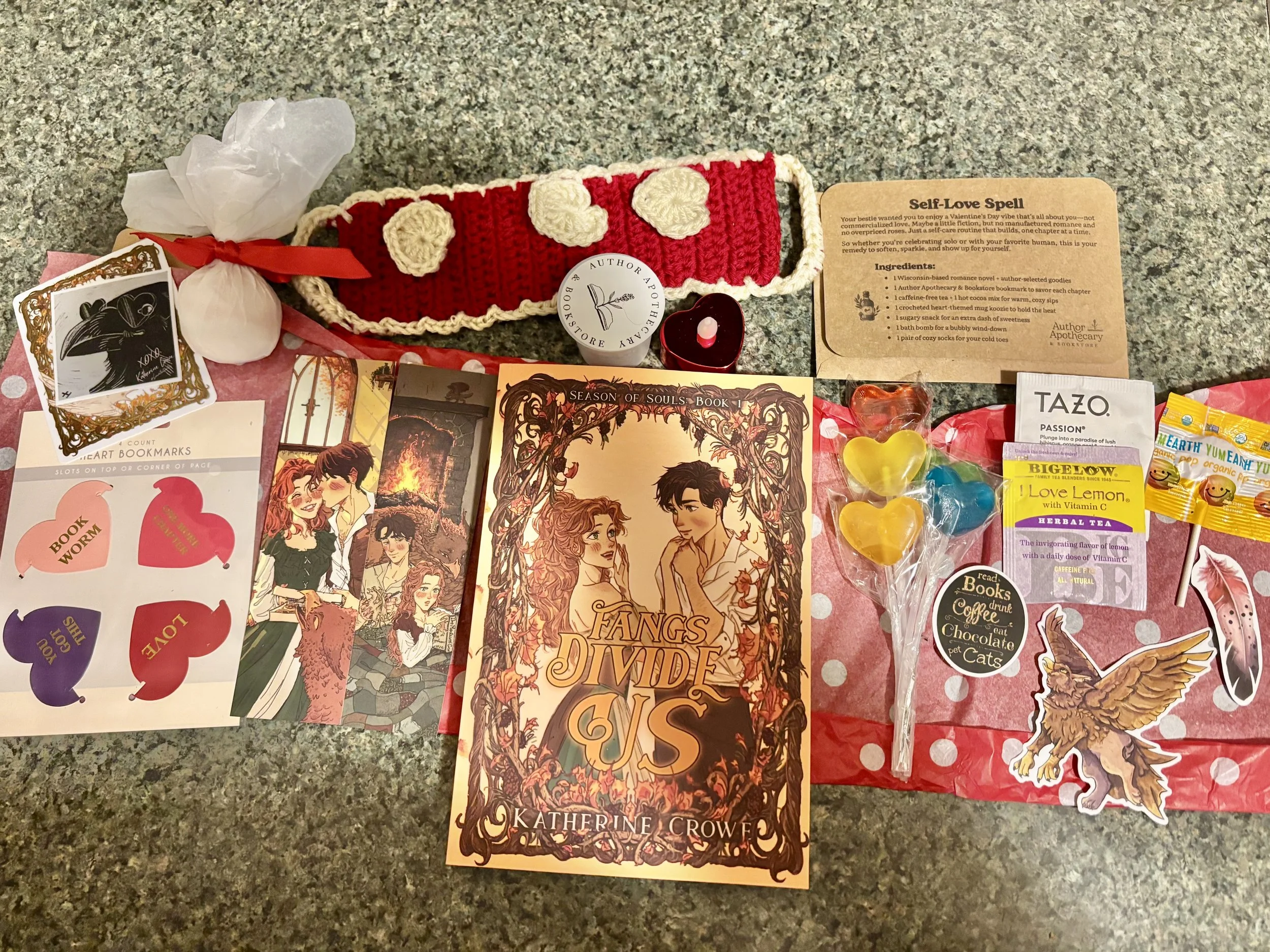 “I got myself the best Valentines Day present ever! I gifted myself a Self-Love Spell with not one, but three Wisconsin-based romance novels, and all kinds of adorable goodies!”
